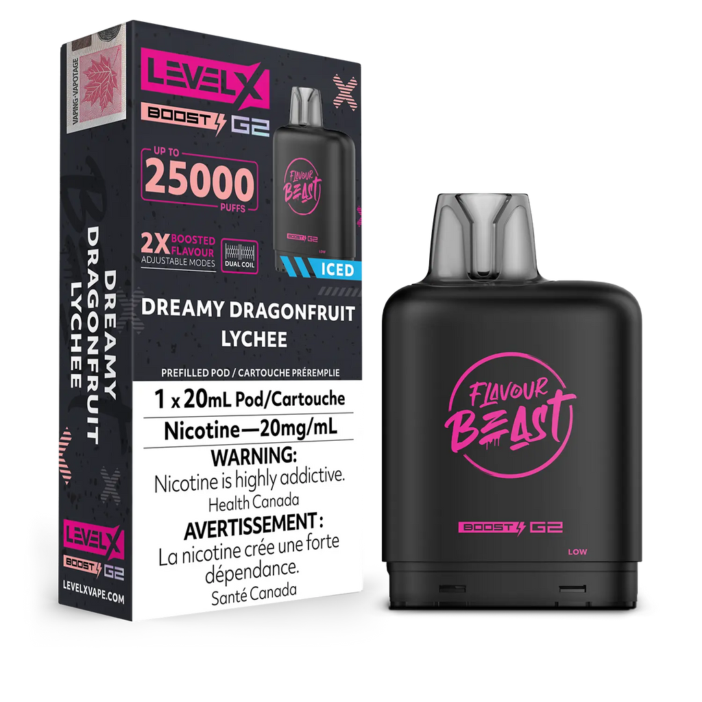- Massive pod capacity that will last you for up to 25,000 puffs with Eco Mode ‘Eco Mode’ requires a Level X Boost G2 battery - Coming soon!